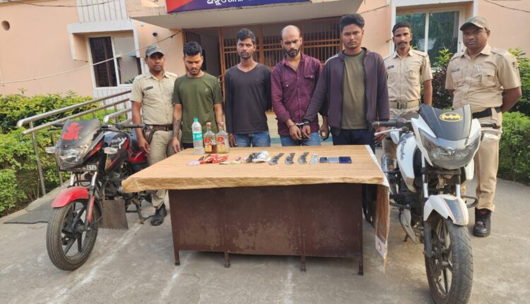 ଚଳଚଞ୍ଚଳ ଅନୁଗୁଳ ଟାଉନ ଥାନା ପୋଲିସ।ଡକାୟତ ଯୋଜନା କରୁଥିବା ସମୟରେ ମାଡି ବସିଲା।ଅନୁଗୁଳ ସହରରେ ଚୋରି ଡକାୟତି ଓ ରାହାଯାନୀ ଆଦି ଉପରେ ଅଙ୍କୁଶ ଲଗାଇବା ପାଇଁ ଆରକ୍ଷୀ ଅଧିକ୍ଷକ ରାହୁଲ ଜୈନଙ୍କ ନିର୍ଦ୍ଦେଶ ଅନୁଯାଇ ଅନୁଗୁଳ ଟାଉନ ଥାନାର ଏକ ଟିମ ସହର ର ବିଭିନ୍ନ ସ୍ଥାନରେ ଚଡାଉ ଜାରି ରଖିଛି l ଏହି ସମୟରେ ଗୁରୁବାର ଓ ଶୁକ୍ରବାର ମଧ୍ୟ ରାତ୍ରରେ ଉକ୍ତ ଟିମ କୁ ଏକ ଡକାୟତି ଯୋଜନା ବିଷୟରେ ବିଶେଷ ସୂତ୍ରରୁ ଖବର ମିଳି ଥିଲା l ଏହା ପରେ ତୁରନ୍ତ ଟାଉନ ଥାନାର ପୋଲିସ ଟିମ ସହରର ମଦନ ମୋହନ ମନ୍ଦିର ପଛରେ ଥିବା ପିଣ୍ଡି ରୁ ପ୍ରଗତି କ୍ଷୀର ବ୍ୟବସାୟୀ ଙ୍କ ଠାରୁ ଡକାୟତି କରିବା କୁ ଯୋଜନା କରୁଥିବା ଚାରି ଜଣ କୁ ଗିରଫ କରିଥିବା ବେଳେ ଜଣେ ଫେରାର ହେବାରେ ସଫଳ ହୋଇଥିଲା ,ଯାହାକୁ ଧରିବାକୁ ପୋଲିସ ଚେଷ୍ଟା ଜାରି ରଖିଛି lଗିରଫ ବ୍ୟକ୍ତି ମାନଙ୍କ ନିକଟରୁ ତିନୋଟି ବାଇକ ,ଦୁଇଟି ହାତ ତିଆରୀ ଜୀବନ୍ତ ବୋମା, ଲୁହା ଚାପଡ଼, ଖେଳନା ବନ୍ଧୁକ, ଲଙ୍କା ଗୁଣ୍ଡ, ମଦ ବୋତଲ, ମୋବାଇଲ ଫୋନ ଆଦି ପୋଲିସ ଜବତ କରିଛି l ଏହି ମାମଲାରେ ଭାରତୀୟ ନ୍ୟାୟ ସଂହିତା ଦଫା ୩୧୦/୪&୫/୨୫ ଅସ୍ତ୍ର ଶସ୍ତ୍ର ନିରୋଧ ଆଇନ ଏବଂ ୪/୫ ବିସ୍ପୋରକ ପଦାର୍ଥ ଆଇନ ଅନୁଯାଇ ଅନୁଗୁଳ ଥାନାରେ କେଶ ନମ୍ବର ୩୩/୧୦.୧.୨୫ ମାମଲା ରୁଜୁ କରି ପୋଲିସ ଅଧିକ ତଦନ୍ତ ଜାରି ରଖିଛି ।